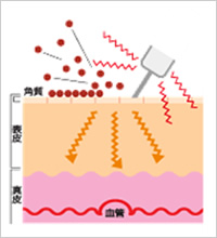 赤色LEDは真皮層にある繊維芽細胞(コラーゲンを生成する細胞)を増やすことにより、乾燥を防ぎ、ハリ・ツヤを与えます